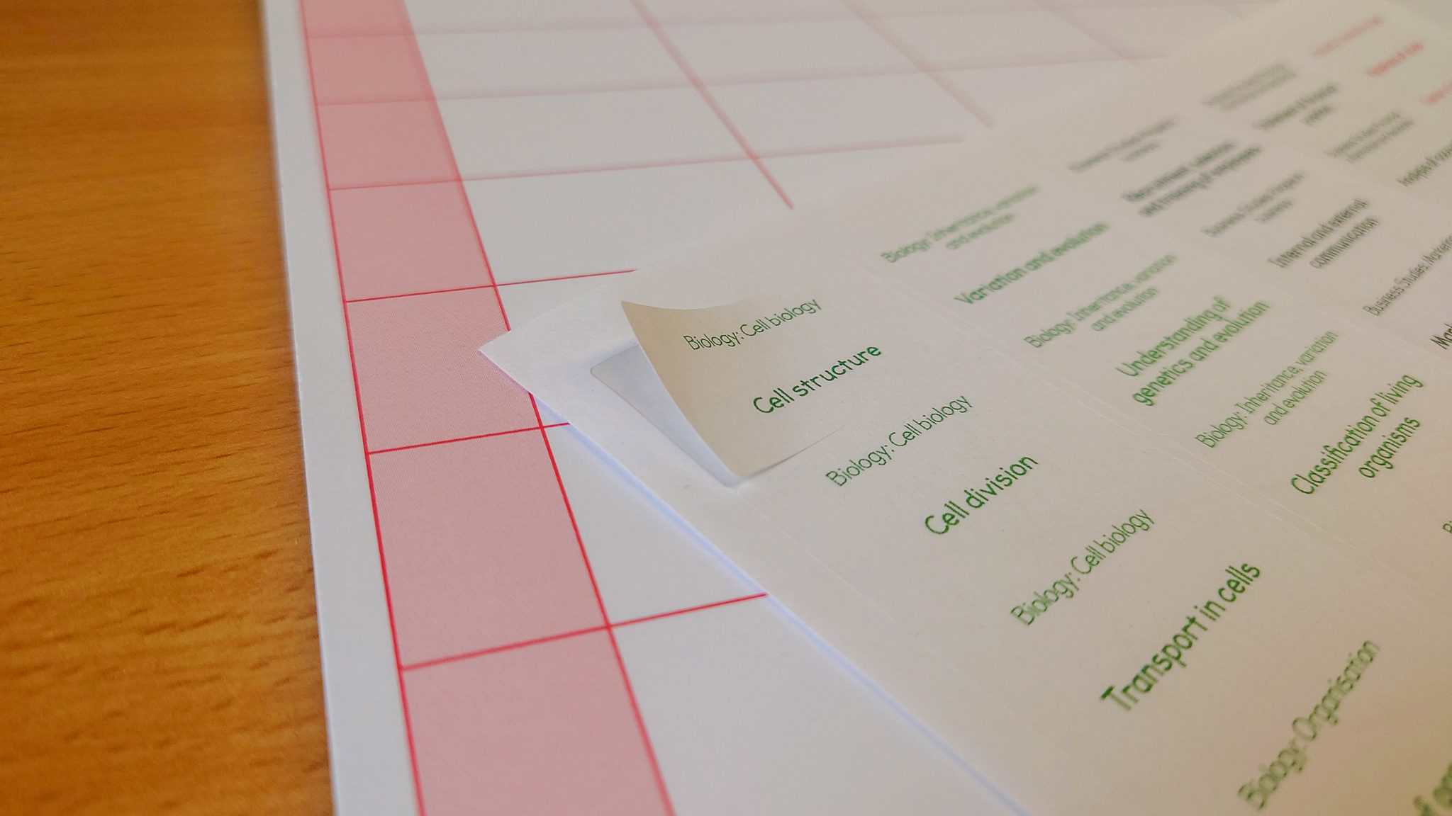 Each subject is printed in a different colour to make it easy to spread subjects out and see if any are being avoided.