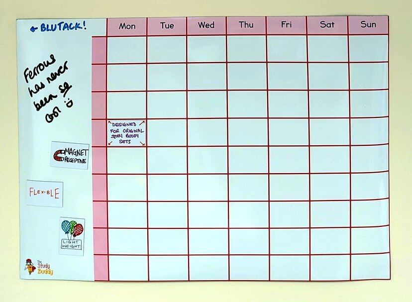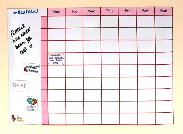 Not everyone wants or needs the full-size board (we do recommend it for GCSEs and A Levels where possible). This alternative is perfect for those situations where you’re not managing a backlog of work, but perhaps managing daily activities. They are dry-wipe so perfectly reusable. And the weekly grid is designed to work with our magnetic cards and revision sets.