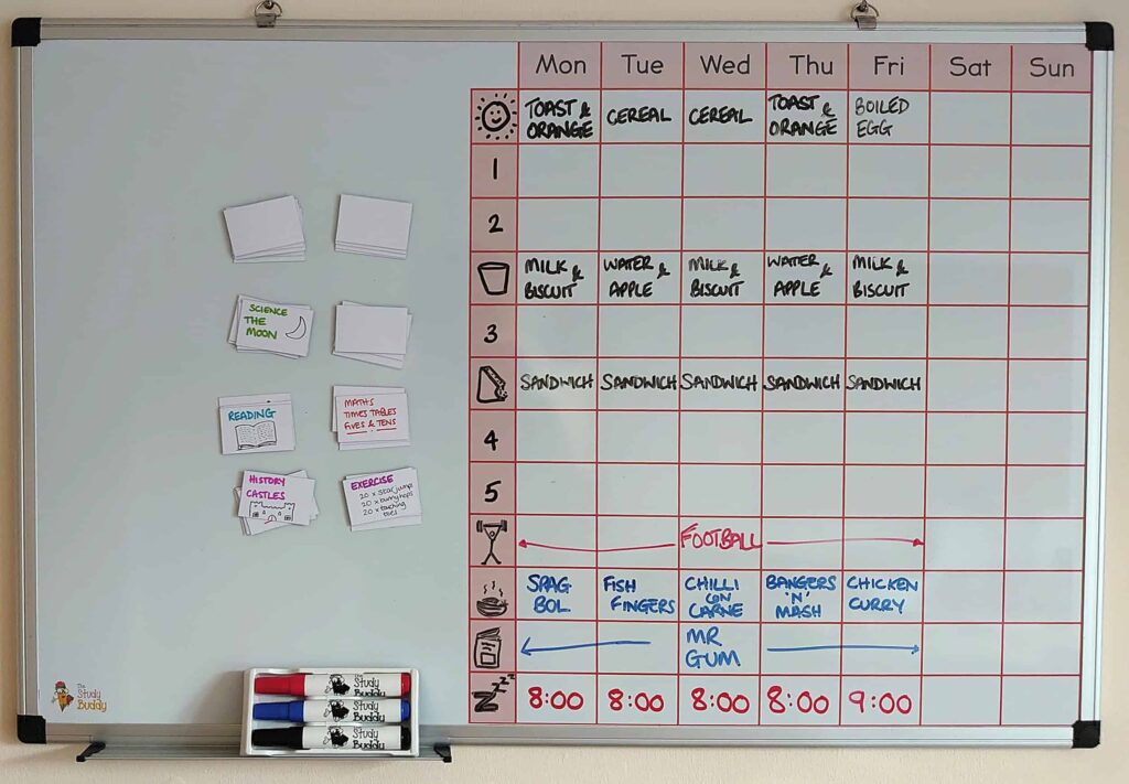 This also works for older children, structuring homework, preparing for end-of-year tests, and so on.