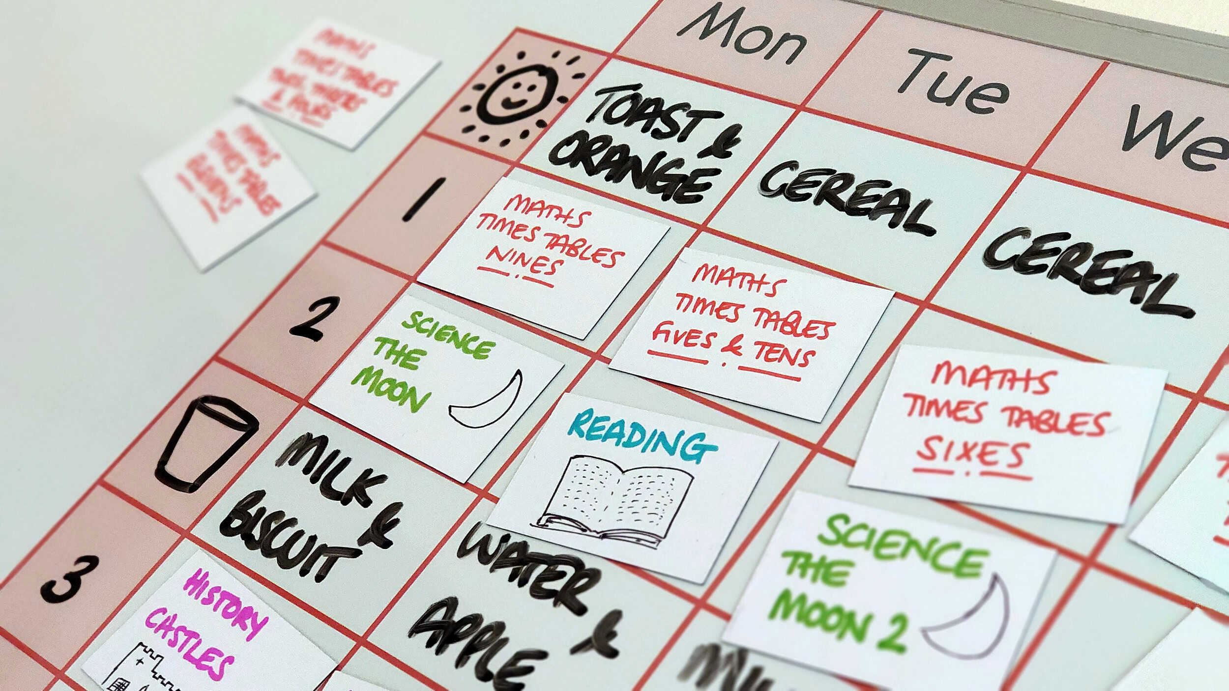 This also works for older children, structuring homework, preparing for end of year tests and so on.