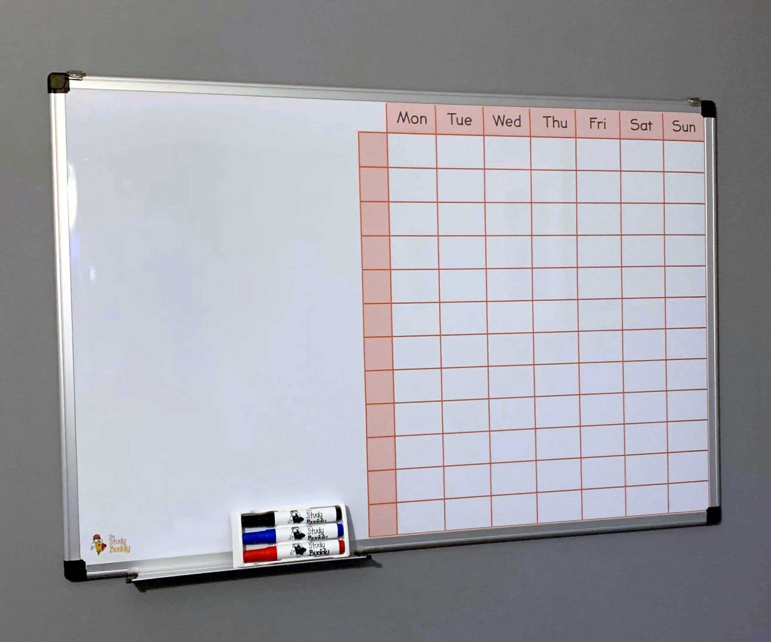 Our magnetic whiteboard is specifically designed for our units. The week-to-view plan leaves plenty of room for the backlog of work to be on display. The beauty of this being a physical approach is that everyone can see at a glance what the plan is.