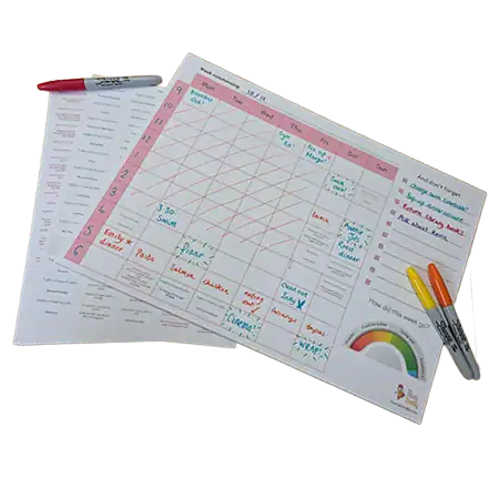 The Jotter sits right on their desk – no drilling, no “big project” setup. Just easy mapping of the coming week. It’s a physical, tactile “To-Do” list that they actually have control over.