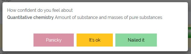 As units are completed you ‘tick them off’. This shows how far through your course you are. In development, we went one step further; asking how confident the student feels about each given topics. These are simply graded low, medium or high confidence. Or, as the system puts it, ‘panicky’. ‘ok’, or ‘nailed it’.