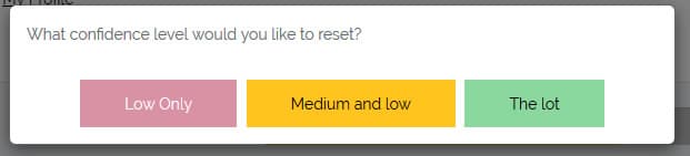 What this means for students is that they could have an initial run through, indicating how they feel about each unit. Now they can ‘reset’. At this stage, they might reset their low confidence items as a starting point. Now when each unit is completed they can revisit how confident they feel. Hopefully, these topics will start to move into medium and high confidence levels!